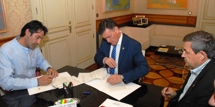 El presidente de la Diputación, Francisco Vázquez, y el alcalde de Cozuelos de Fuentidueña, Jesús Salvador Arévalo, han suscrito el convenio por el que se materializa esa ayuda procedente del Área de Acción Territorial. Precisamente su diputado responsable, Basilio del Olmo, ha estado presente también en el acto de firma junto a la secretaria general de la institución provincial, Lourdes Merino.