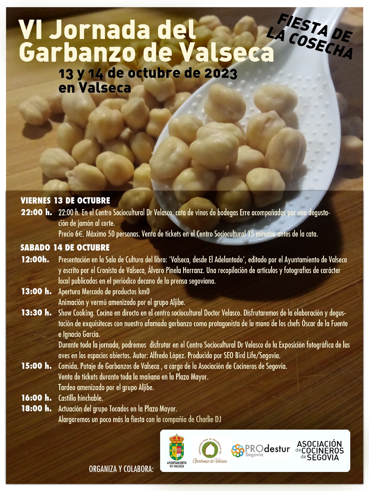 VI JORNADA DEL GARBANZO DE VALSECA VI JORNADA DEL GARBANZO DE VALSECA Fiesta de la cosecha. VI jornada de garbanzo de Valseca el 13 y el 14 de octubre de 2023 en Valseca. Documentos Cartel VI jornada del garbanzo de Valseca.jpg (jpg 551,1 kB)