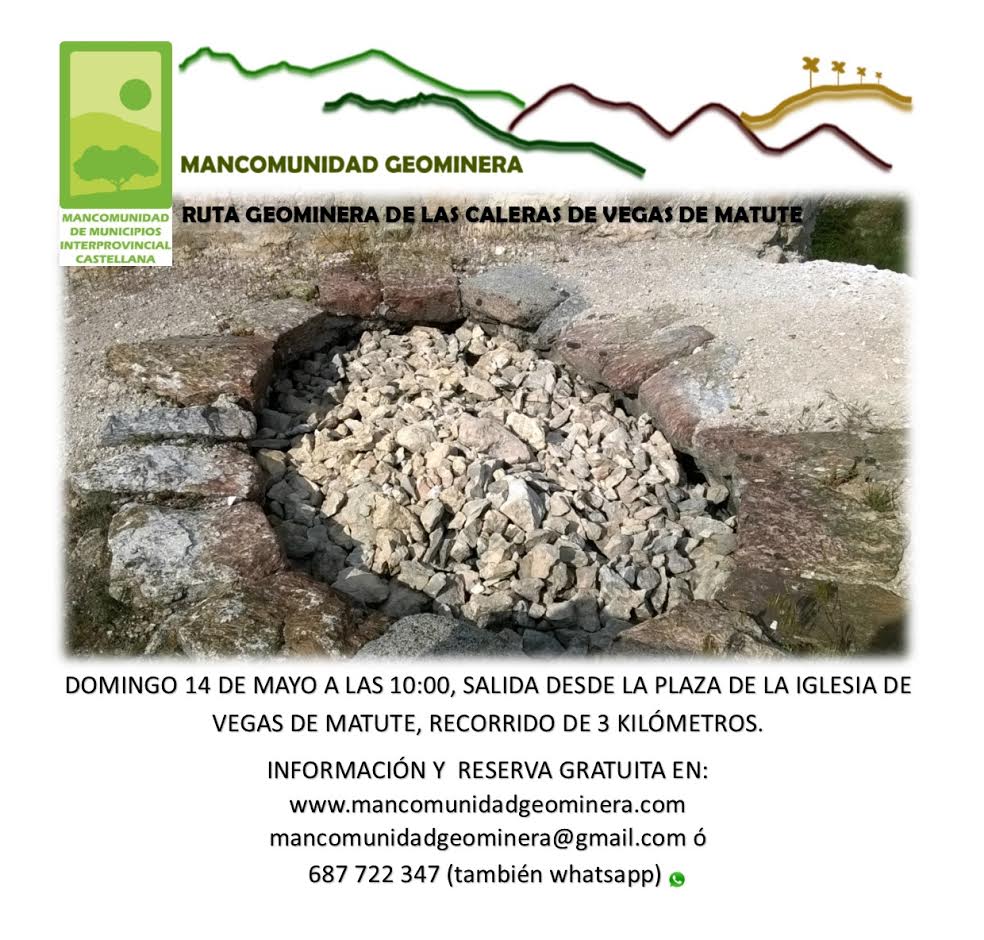 El domingo 14 de mayo tendrá lugar una ruta geominera por las caleras de Vegas de Matute. La salida será a las 10:00 desde lal plaza de la Iglesia de Vegas. Toda la información se encuentra en el cartel adjunto.
