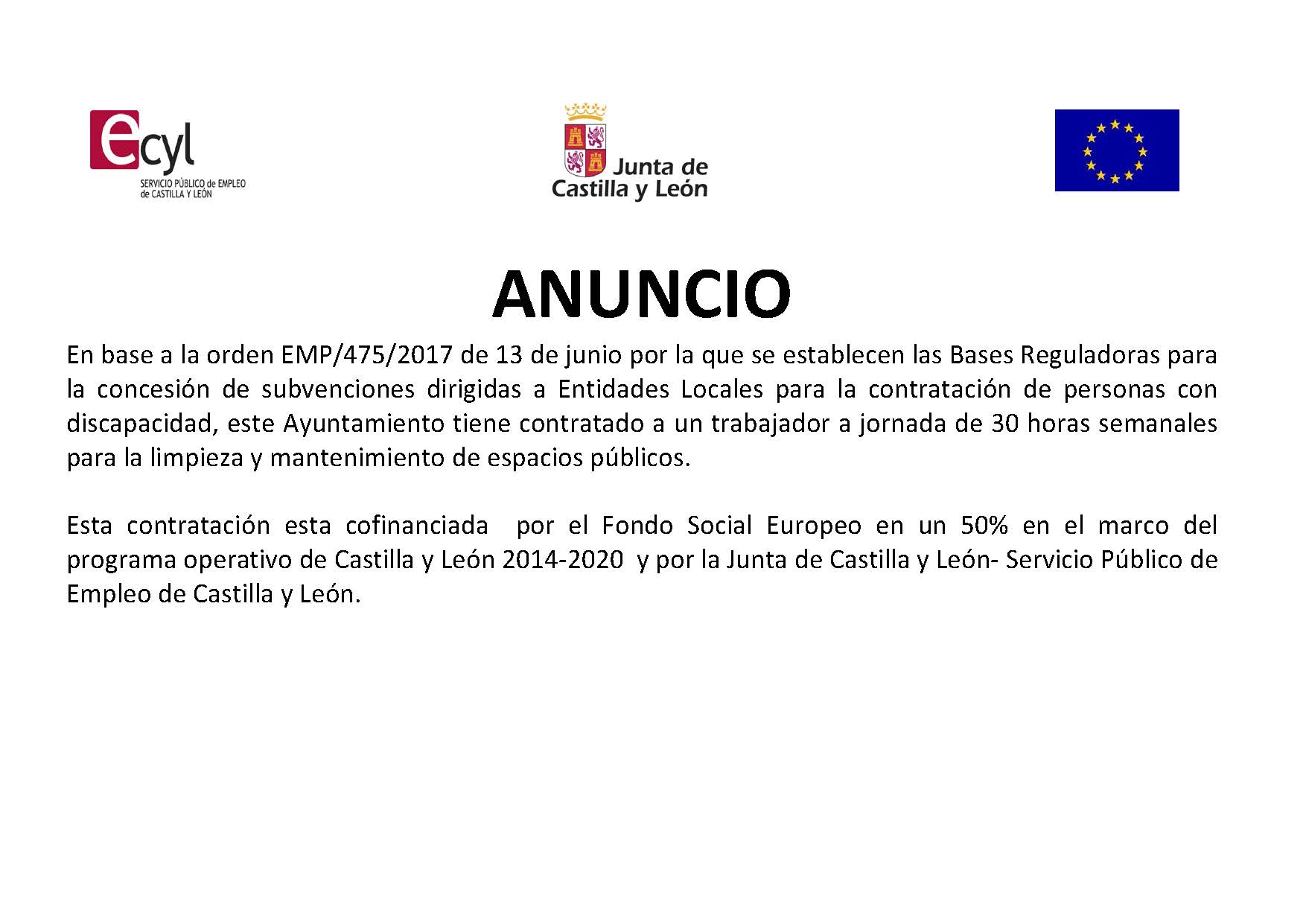Resolución del Servicio Público de Empleo de Castilla y León por la que se resuelve la convocatoria de subvenciones cofinanciadas por el Fondo Social Europeo, dirigidas a Entidades Locales para la contratación de personas con discapacidad para la realización de obras y servicios de interés público y utilidad social durante el año 2017.
