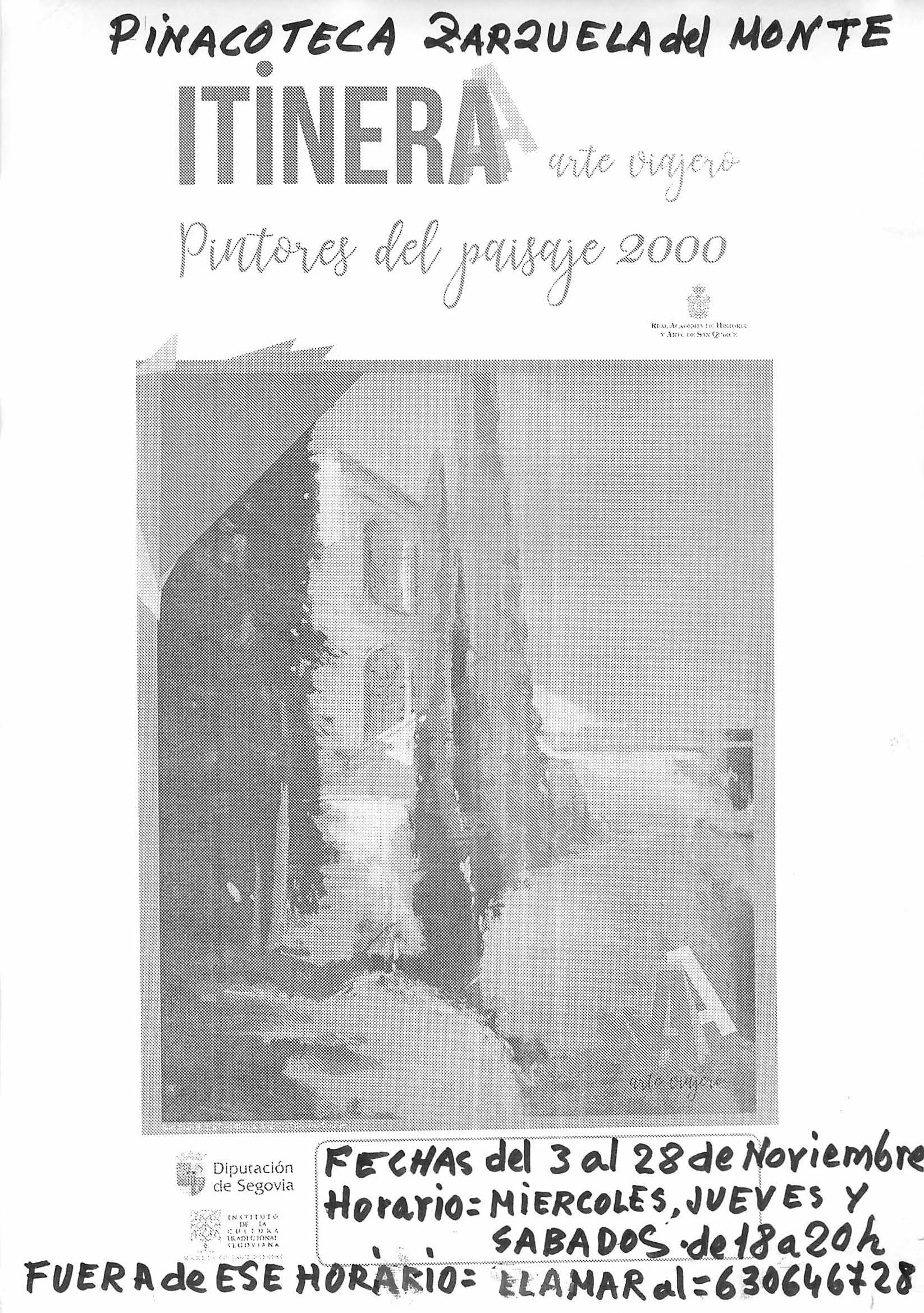 El Ayuntamiento de Zarzuela del Monte como participante de la campaña proyecto de exposiciones itinerantes ITINERA promovido por la Diputación Provincial de Segovia, expone en la Pinacoteca de Arte Contemporáneo del municipio la exposición "PINTORES DEL PAISAJE 2000"