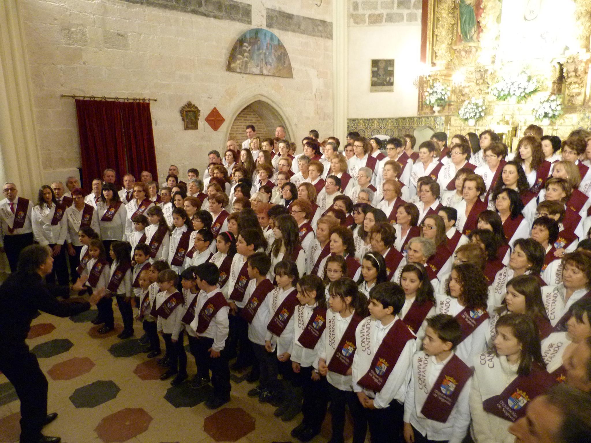 Después llegó el turno de las agrupaciones colectivas, integradas por representantes de los distintos pueblos participantes en el proyecto. Una escolanía o coro de niños interpretó `Din, don, dan´; las voces graves o el coro de varones `Nunca suenas las campanas´, y el fin de fiesta por el gran coro Convivir Cantando, en el que los 230 integrantes de todos los coros interpretaron `Noche de paz´. Todos ellos dirigidos por el alma Mater del proyecto, José Ramón Bayón Magdaleno.