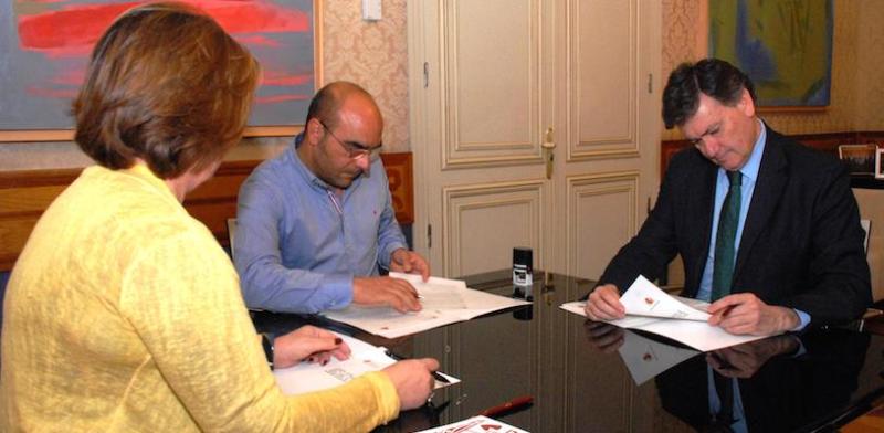 El presidente de la Diputación, Francisco Vázquez, y el alcalde de Campo de San Pedro, Diego López Bayo, han firmado un convenio para hacer efectiva la subvención de la institución provincial. En el acto han estado también presentes el diputado de Acción Territorial, Basilio del Olmo, y la secretaria general de la Diputación, Lourdes Merino.